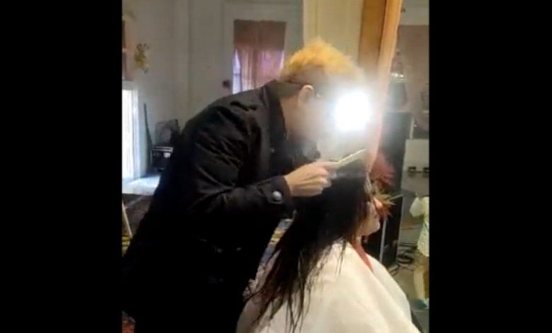 जिसमें वह एक महिला के बालों को काटते हुए दिख रहे हैं. इस वीडियो के वायरल होने की
