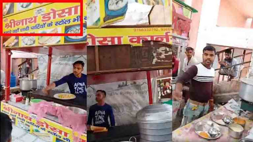 कि कोई समस्या हो सकती है। उस दिन कुछ लोगों ने आकर बैनर फाड़ दिए और कहा कि मुस्लिम लोग हिंदू नाम से दुकान नहीं चला सकते। ऐसा लग रहा था कि उन्हें नाम के साथ कोई समस्या है। सोशल मीडिया पर सामने आए एक वीडियो में कुछ लोगों को डोसा-विक्रेता को कथित तौर पर परेशान करते देखा जा सकता है। आरोपी को कथित तौर पर इरफान से ये कहते हुए सुना जा सकता है कि ‘हिंदू खाने आएंगे’, क्योंकि स्टॉल का नाम श्रीनाथ है। घटना का एक वीडियो बाद में फेसबुक पर भीड़ का नेतृत्व कर रहे देवराज पंडित ने पोस्ट किया। उन्होंने दुकानदार पर ‘आर्थिक जिहाद’ का भी आरोप लगाया। उसने ये भी दावा किया कि उनके जैसे लोगों के कारण हिंदुओं को रोजगार नहीं मिलता है।
