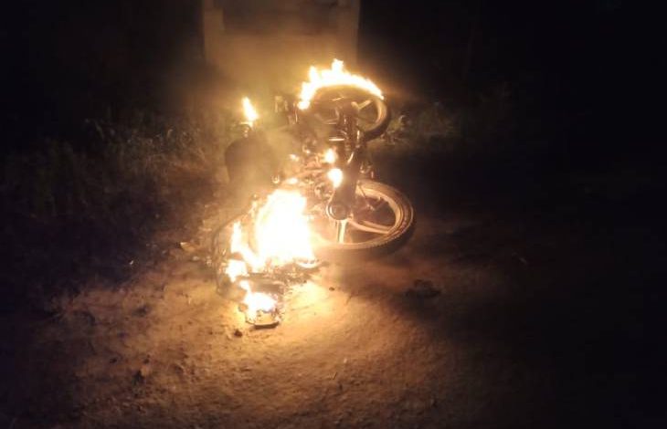 अपनी जान से प्यारी मोटर साईकल को आग के हवाले किया है। सड़क से गुजरने वाले जिस किसी ने
