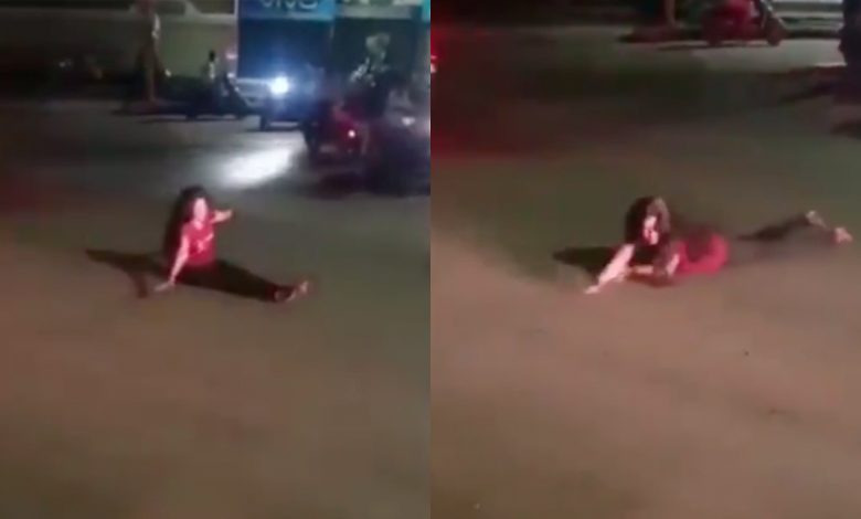 शराब पीकर लड़की ने किया सरेआम हंगामा दोस्त के साथ नशे में धुत घूम रही थी युवती