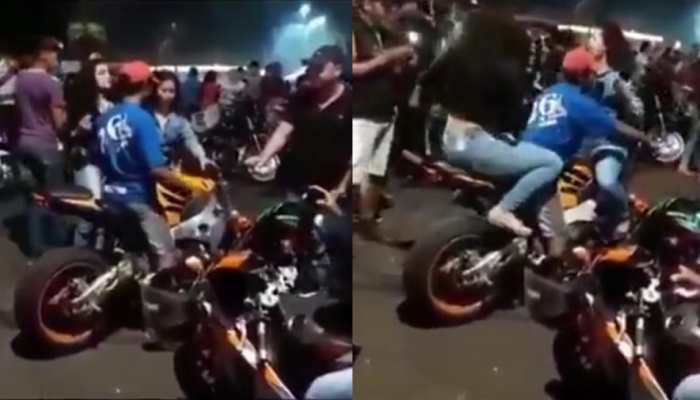 बाइक से स्टंट के दौरान हुआ खतरनाक हादसा लड़कियों को इंप्रेस करनी की कोशिश कर रहा था युवक