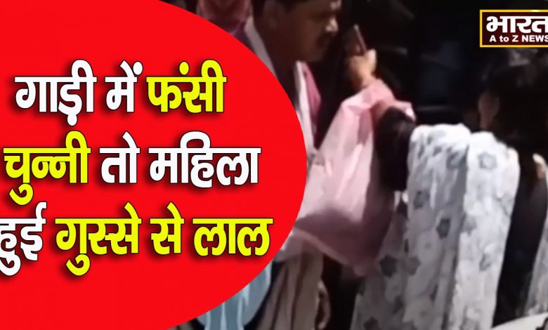 मामूली बात को लेकर महिला ने बीच सड़क किया हंगामा गाड़ी में फंसकर खिंची चुन्नी तो ई-रिक्शा चालक पर हावी हुई महिला