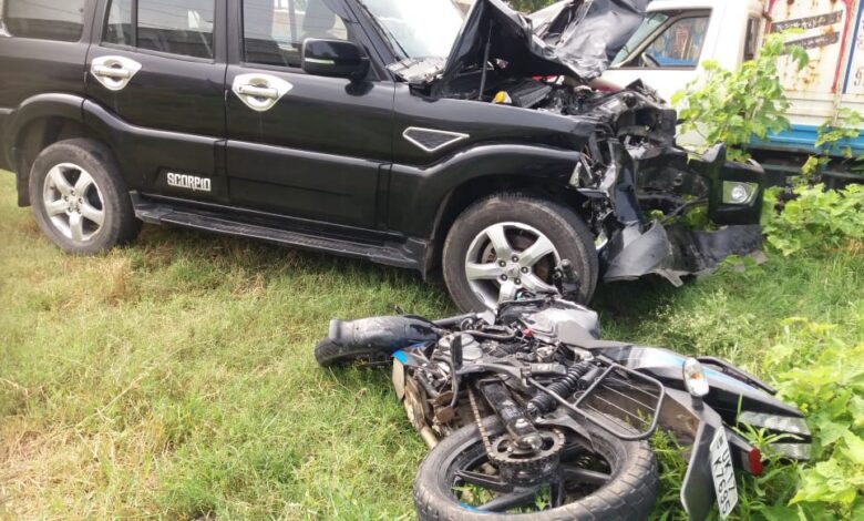 स्कॉर्पियो व बाइक की टक्कर में बाइक सवार गंभीर रूप से घायल