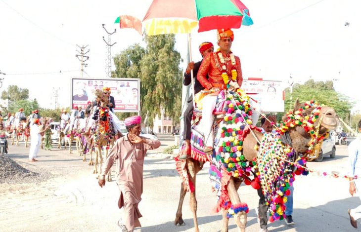 दुल्हन को लेने ऊँट पर सवार होकर पहुंचा दूल्हा