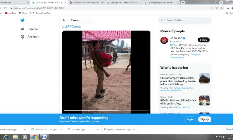 फिर देखने को मिली यूपी पुलिस की जिंदादिली पुलिसकर्मी ने बंदूक के साथ बुजुर्ग को गोद में उठाया