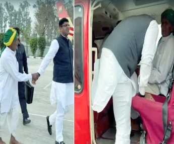 हरियाणा के डिप्टी सीएम का अनोखा अंदाज ताई के बाद अब ताऊ को घुमाया हेलीकाप्टर में