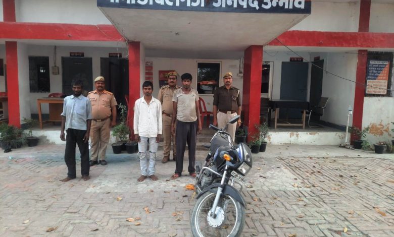 चोरी के मोटरसाइकिल के साथ तीन अभियुक्त हुए गिरफ्तार