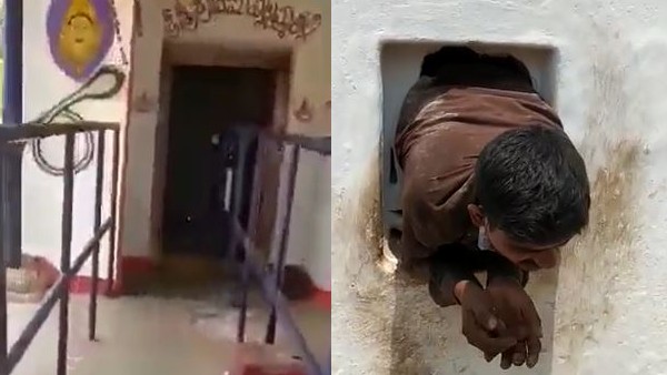 मंदिर से गहने चुराने के लिए चोर ने दीवार में किया छेद अपने ही बनाए छेद में फंसा चोर