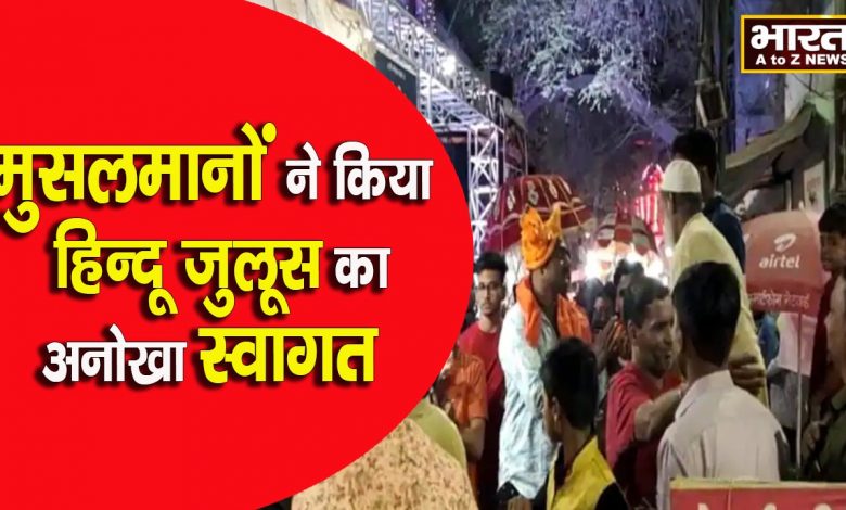 मस्जिद के सामने से निकला हिन्दुओं का जुलूस मुसलमानों ने सहर्ष किया हिन्दुओं का स्वागत