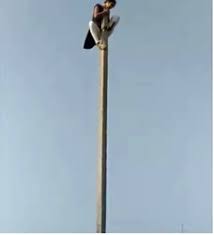 21 वर्षीय युवती ने दिखाया अपना अनोखा अंदाज पायल बांधकर बिजली के खंभे पर चढ़ी लड़की