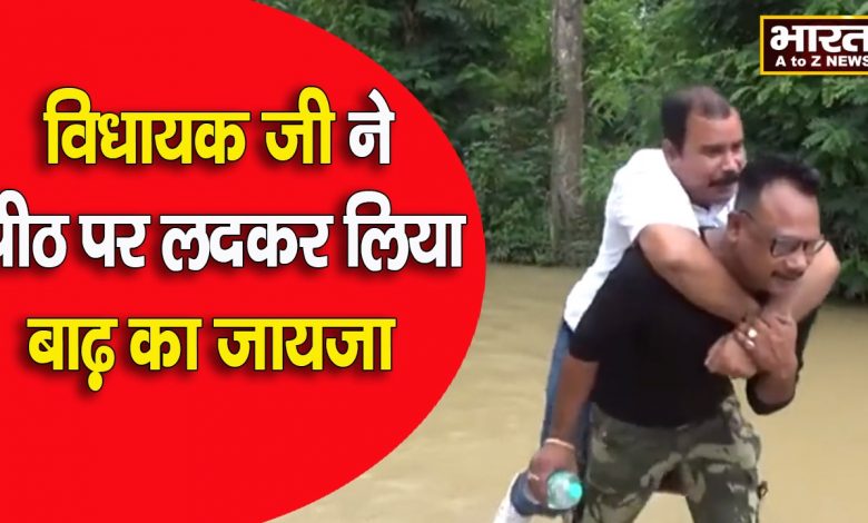 असम के एक भाजपा विधायक का वीडियो सामने आया है. वीडियो में बीजेपी विधायक को एक बाढ़ बचाव कार्यकर्ता की पीठ पर एक नाव की सवारी करते हुए देखा जा रहा है. एक वीडियो के सोशल मीडिया प्लेटफार्म पर सामने आने के बाद यूजर की ओर से फटकार लगाई जा रही है. लुमडिंग विधानसभा के विधायक सिबू मिश्रा की इस “असंवेदनशील” होने के लिए आलोचना की जा रही है. बाढ़ ने पूर्वोत्तर राज्य में भारी तबाही मचाई है. बाढ़ से कई लोगों की मौत भी हो गई और असम के 27 जिलों में फैले 6.6 लाख से अधिक लोग प्रभावित हुए. विधायक सिबू मिश्रा बाढ़ क्षेत्र की स्थिति की समीक्षा करने के लिए होजई जिले में थे…..वायरल वीडियो में दिखाया गया है कि विधायक को बचावकर्मी अपनी पीठ के सहारे एक नाव पर ले जा रहा है, जो मुश्किल से कुछ ही कदम दूर है.