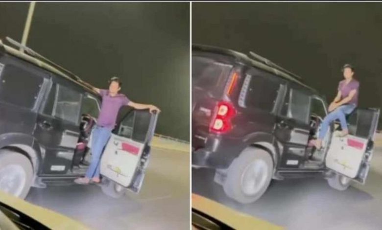 फॉर्च्यूनर पर सवार युवक ने किया स्टंट खतरनाक स्टंट करना युवक को पड़ा महंगा