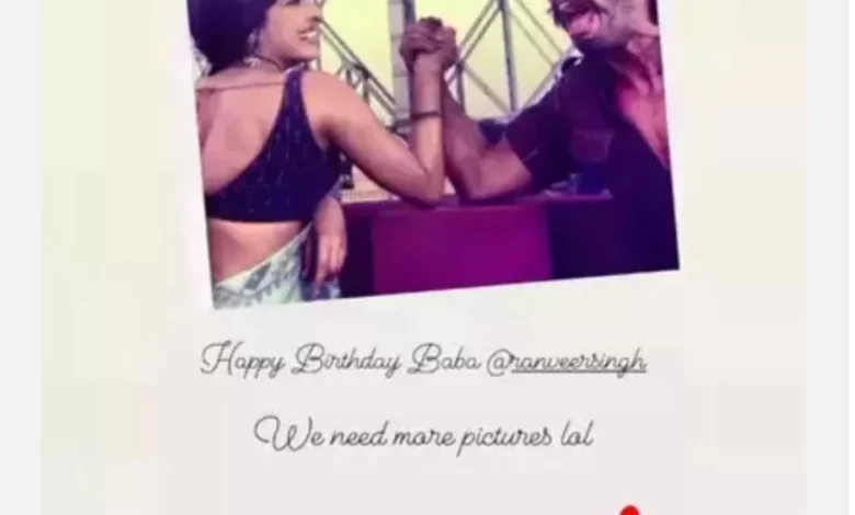 रणवीर के बर्थडे पर प्रियंका चोपड़ा ने ‘गुंडे’ डेज की एक फोटो सोशल मीडिया पर पोस्टं की. इस फिल्मे मं. रणवीर और प्रियंका के साथ अर्जुन कपूर नजर आए थे. प्रियंका द्वारा पोस्टश किए गए थ्रो-बैक फोटो में वह और रणवीर आर्म रेसलिंग करते दिख रहे हैं. इसमें जहां प्रियंका मुस्कुसराती नजर आ रही हैं, वहीं रणवीर अपने चेहरे पर गूफी एक्सरप्रेशन के साथ दिख रहे हैं. इस फोटो को शेयर करते हुए प्रियंका ने लिखा कि ‘हैप्पी बर्थडे बाबा, वी नीड मोर पिक्च.र्स’.