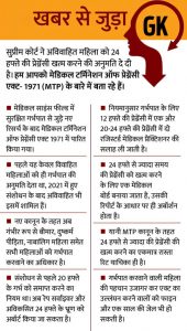 सुप्रीम कोर्ट ने सुनवाई के दौरान कहा कि 2021 में संशोधन के बाद मेडिकल टर्मिनेशन ऑफ प्रेग्नेंसी एक्ट में धारा 3 के स्पष्टीकरण में पति के बजाय पार्टनर शब्द का इस्तेमाल किया जाने लगा है। कोर्ट ने ऑर्डर जारी करते हुए यह भी कहा कि हमारा इरादा वैवाहिक संबंधों से उपजी परिस्थितियों को सीमित करने का नहीं है, लेकिन किसी भी अविवाहित महिला को ऐसे हालात में कानूनी सुरक्षा प्रदान की जा सके, इसलिए कानून का हवाला देकर उसे गर्भपात करवाने से रोकना सही नहीं है।