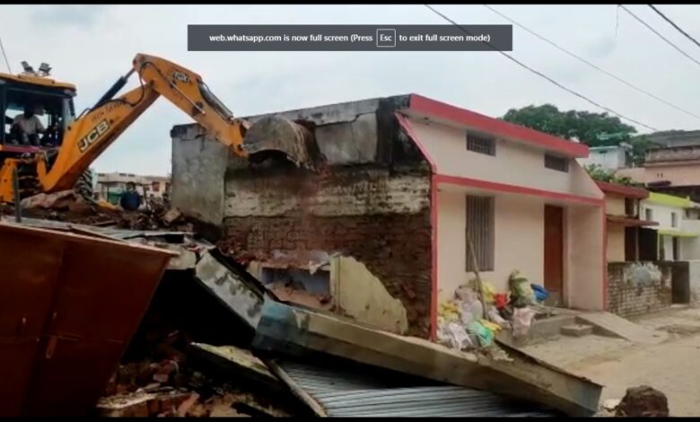 तरह से कब्जा करने वालो की इमारतों को जेसीबी द्वारा ढहा दिया गया ।