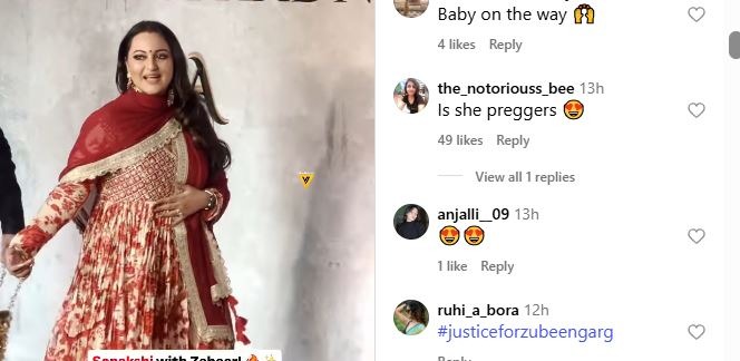 सिर्फ sona के अपनी बेली को छुपाने के तरीके से ही नहीं, बल्कि जिस तरह से एक्ट्रेस के चेहरे पर ग्लो आया है, उसे देखकर फैंस को यही लग रहा है कि वह प्रेग्नेंट हैं। एक यूजर ने लिखा, “ये प्रेग्नेंसी ग्लो है”। दूसरे यूजर ने लिखा, “बेबी ऑन द वे”। एक और अन्य यूजर ने लिखा, “क्या सोनाक्षी सिन्हा प्रेग्नेंट हैं? फैंस तो एक्ट्रेस की प्रेग्नेंसी को लेकर अपना अंदाजा लगा रहे हैं, लेकिन सोनाक्षी ने इस पर अभी तक किसी तरह का रिएक्शन नहीं दिया है।